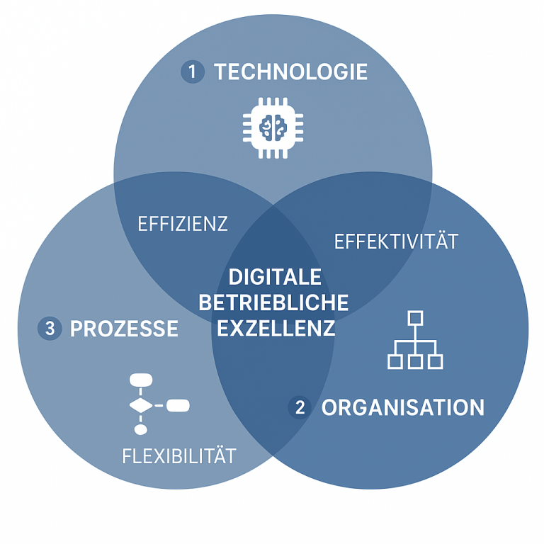 Wir verfügen über umfassende Expertise im gesamten Spektrum der Operativen Exzellenz. Unser strategischer Schwerpunkt liegt jedoch klar auf der Digitalen Exzellenz, die wir als ganzheitlichen Ansatz verstehen – von der Optimierung interner Abläufe bis hin zur Gestaltung erfolgreicher Marktinteraktionen. Wir betrachten diese nicht als optionales Zusatzprogramm, sondern als fundamentale Voraussetzung für die Zukunftsfähigkeit und Wettbewerbsfähigkeit Ihres Unternehmens.